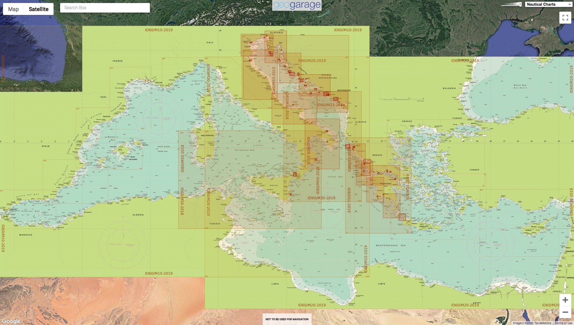 see GeoGarage layers viewer with geograpical areas for the different charts composing the layers